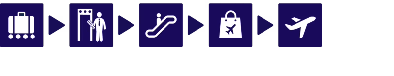 Présentez-vous au contrôle sûreté, puis prenez l’escalator jusqu’au niveau supérieur pour accéder aux portes d’embarquement.