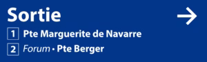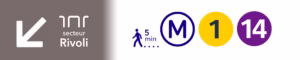 Chaque accès (Sortie) mène à différentes zones du centre de Paris et est clairement indiqué par un numéro, accompagné d’un nom de rue ou de lieu. Choisissez l’accès numéroté le plus proche de votre destination.